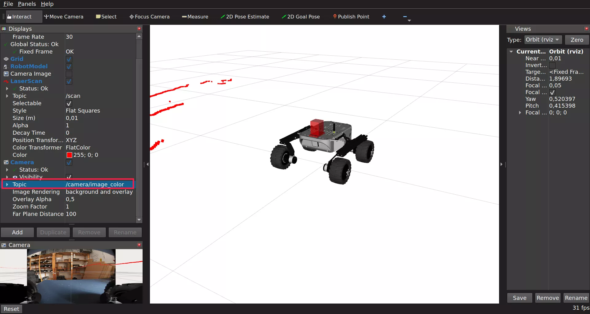 Be sure to select /camera/image_color as the Image Topic.